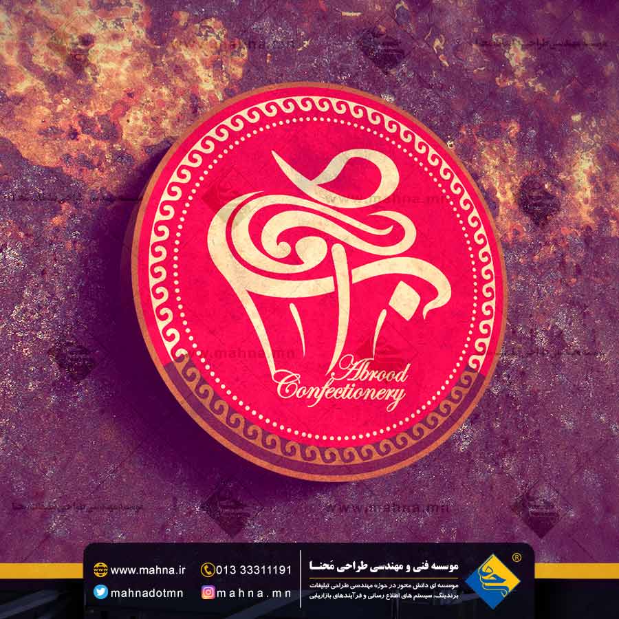 طراحی لوگو و آرم کیک و شیرینی آبرود به سفارش خانواده محترم آبرود که مالک برند آبرود هستند، به موسسه مهندسی طراحی محنا سفارش داده شد. ما در این طرح تلاش داشته ایم بتوانیم با حفظ ماهیت برند خانوادگی آبرود در صنعت شیرینی ، کیک و شکلات ؛ نمایشی وزین از این نام را در اختیار بیننده به عنوان هویت بصری یک برند قرار دهیم.